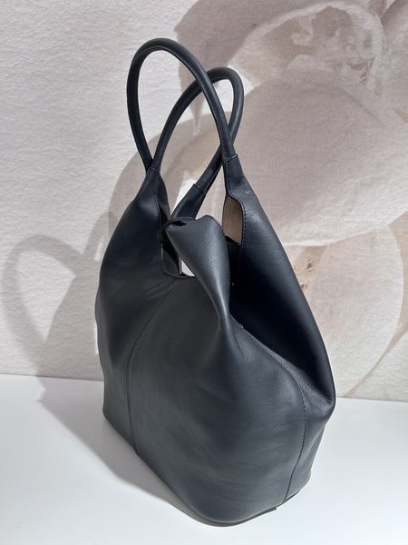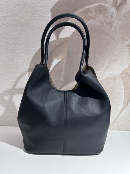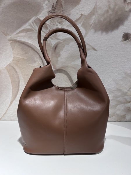 Borsa a spalla in pelle, chiusura con bottone magnetico.