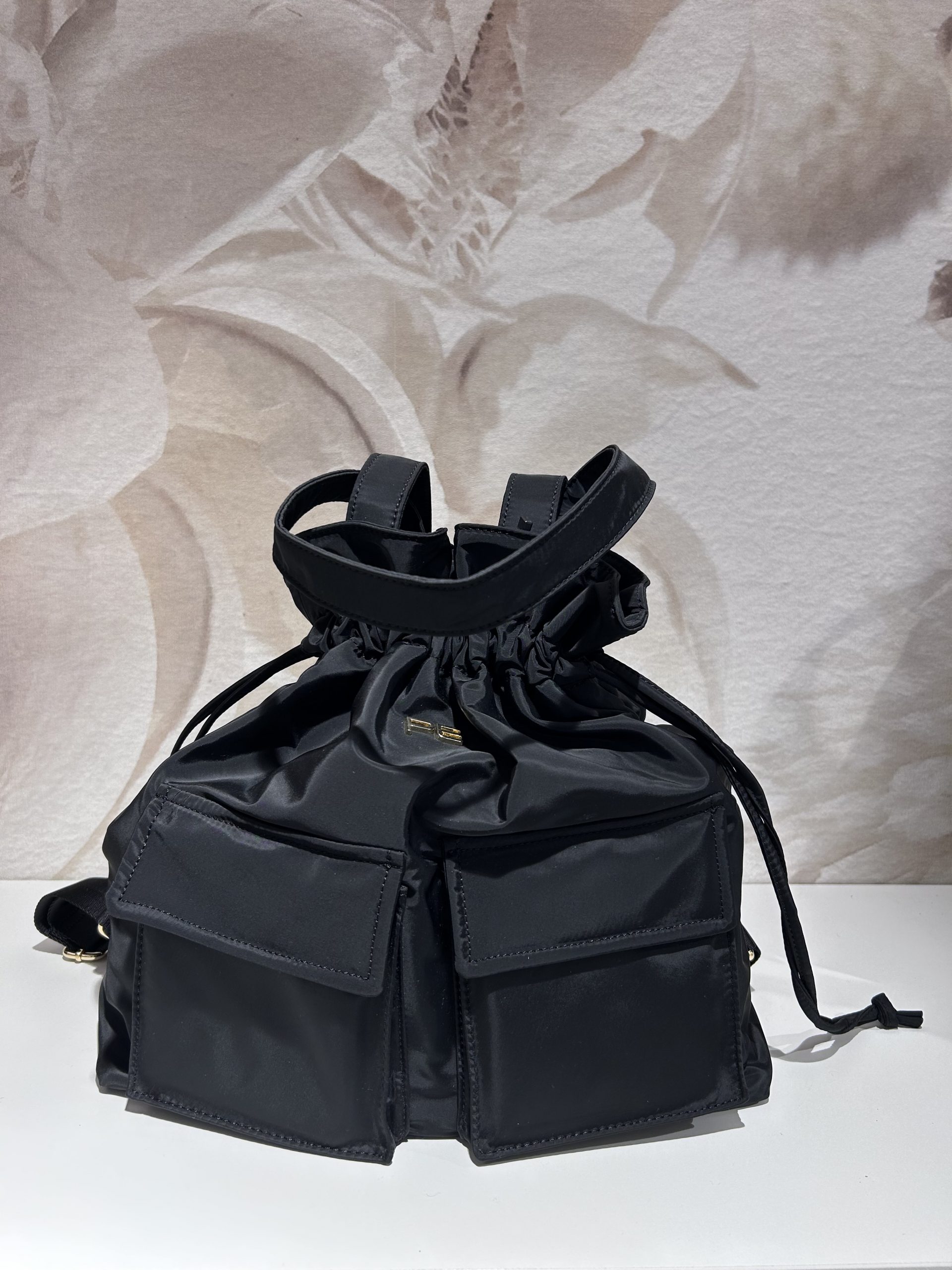 Borsa modello a shopper con tasche cargo, portabile anche come zaino. Modello in tessuto, con manici e bretelle regolabili.