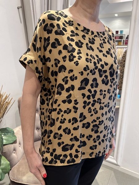 Casacca in twill di viscosa, fit regolare con scollo stondato, manica corta a kimono e spacchi laterali.