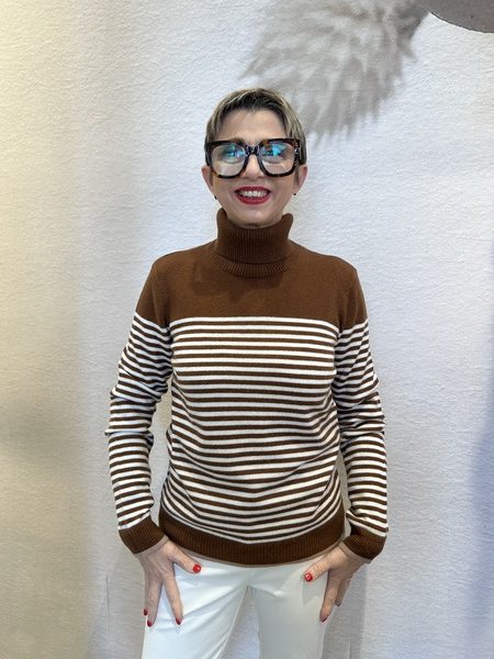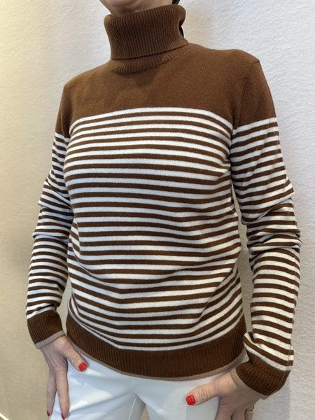 Dolcevita sfiancato in lana e cashmere con collo alto, bordi a costine e dettagli a contrasto ai polsi e in fondo.