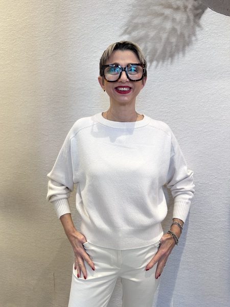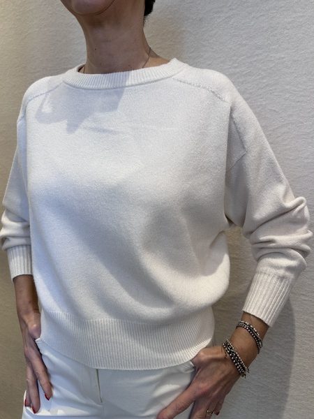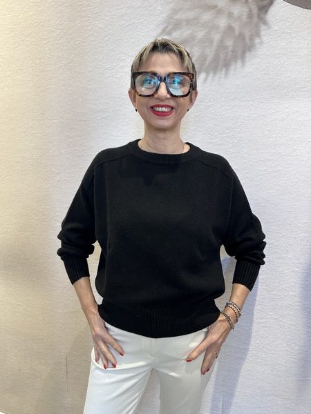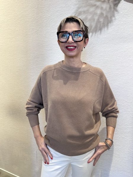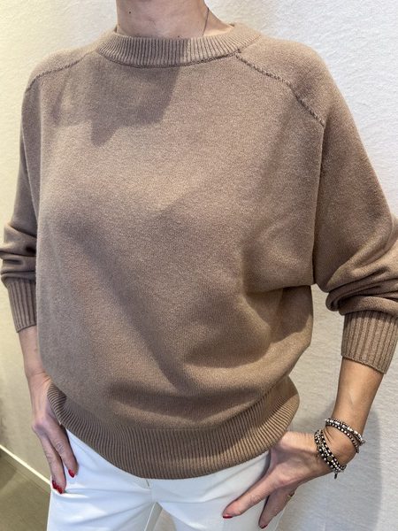 Maglia boxy in viscosa calda con girocollo, manica a raglan e polsino finale.