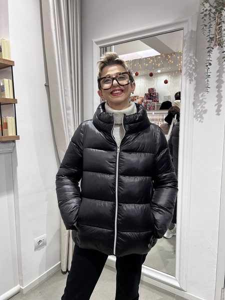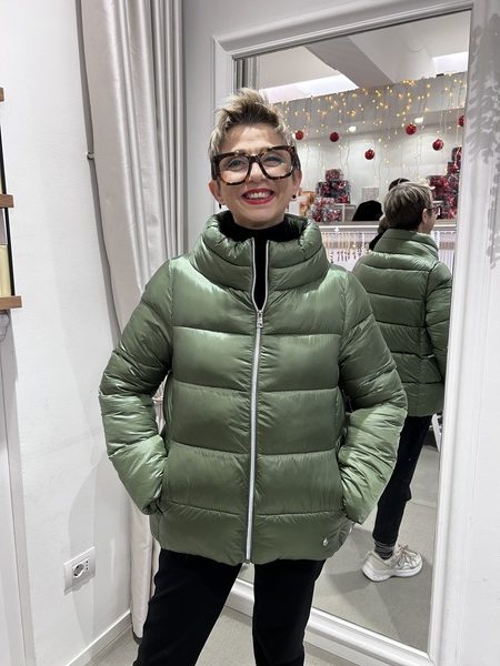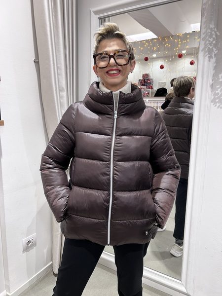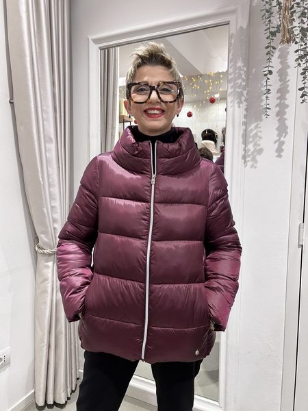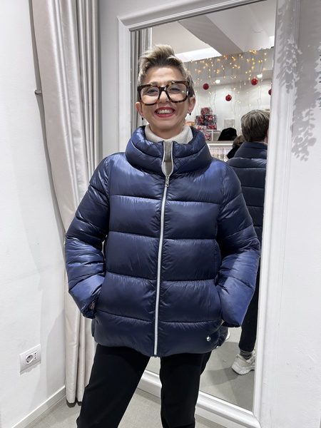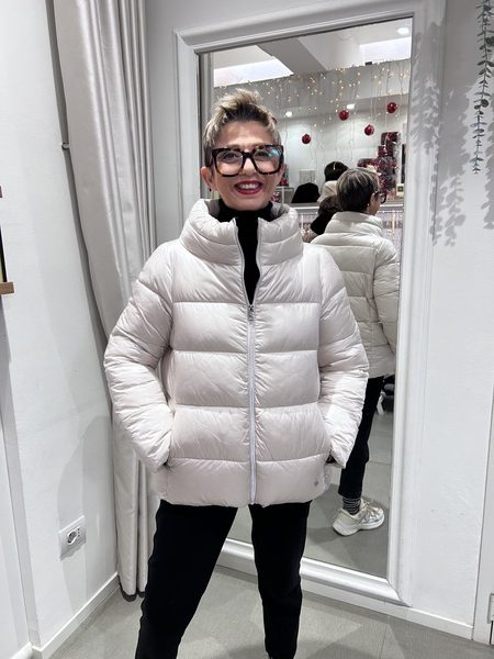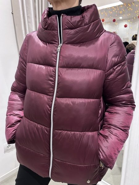 Piumino corto con imbottitura in ovatta, collo alto e chiusura con zip.