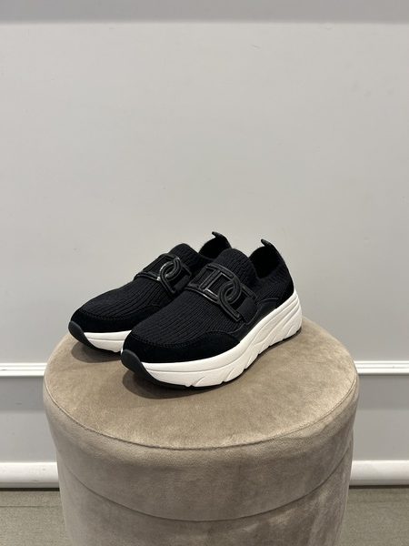 Sneakers modello running slip on in tessuto stretch con inserti effetto pelle, dettaglio iconico Oval T davanti, logo lettering sul retro e fondo in gomma.
